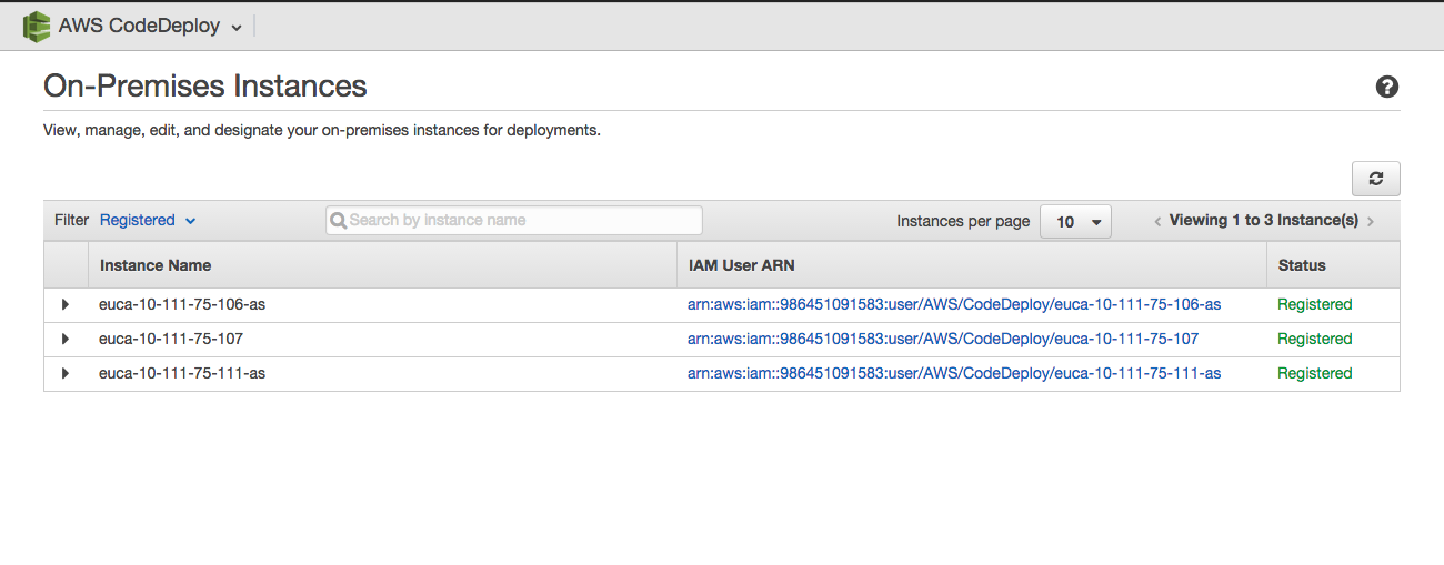Display of Registered On-Premise Instances for AWS CodeDeploy